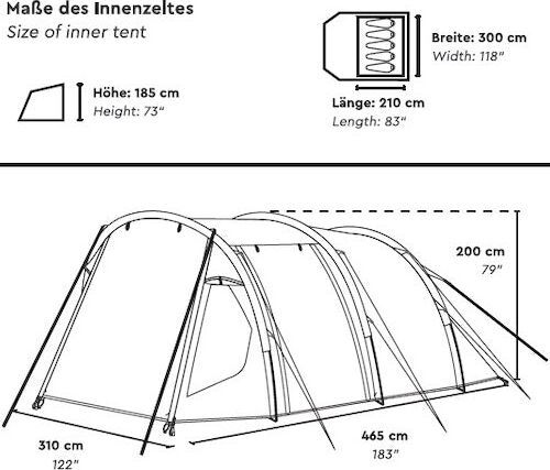 "Spacious tunnel tent with flexible room layout and lots of comfort, ideal for family camping and traveling."