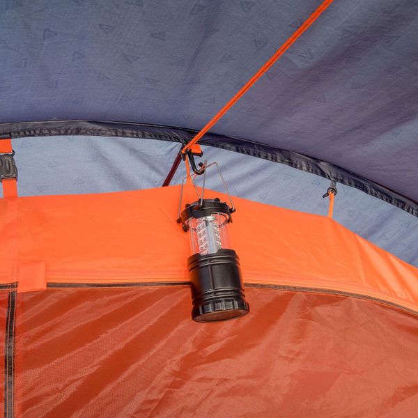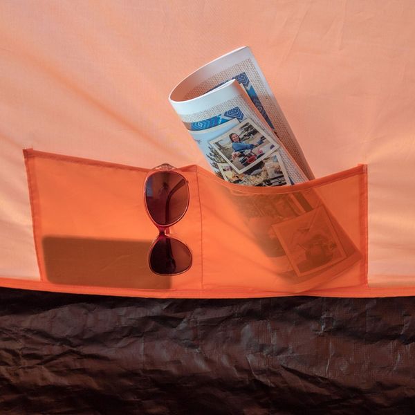 "With a water column of 2000 mm, the tent is ideally protected against rain, while the sturdy fiberglass frame and robust workmanship ensure stability. Practical details such as lamp holders, interior pockets and a clothesline in the roof liner offer additional comfort. Despite its size, the tent remains lightweight with a weight of approx. 14.1 kg and a pack size of approx. 71 u00d7 30 u00d7 30 cm, which makes it ideal for traveling and camping."