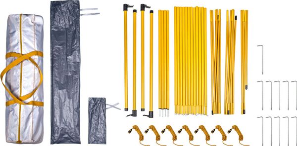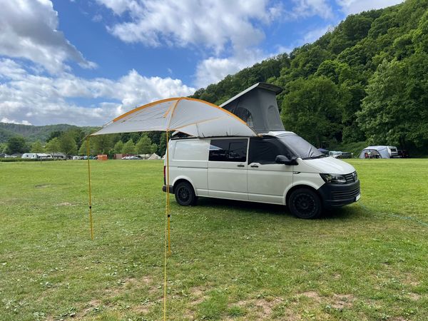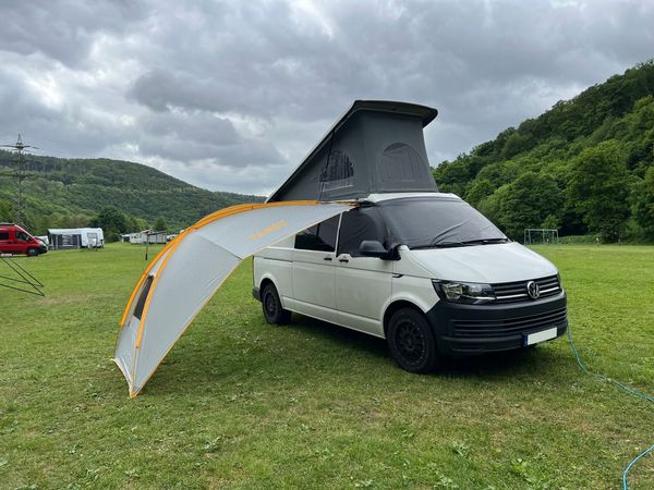 "This awning is particularly flexible: You can use it as a free-standing pavilion with side walls, lean it against your vehicle or attach it with a piping in a piping strip. The integrated ventilation windows ensure pleasant air circulation, while the sturdy fiberglass and steel poles guarantee a secure stand. With a weight of just 6.75 kg and a compact pack size, it is easy to transport and space-saving to stow away, perfect for use in a car, van or camper"