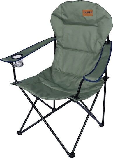 "The BENGALA camping chair from TAMBU is the ideal companion for anyone who values comfort and functionality when camping, fishing or at festivals. With its comfortable seat height of 45 cm and a backrest height of 106 cm, it offers a comfortable, upright sitting position, perfect for long evenings in the open air. The robust powder-coated steel construction ensures stability on a wide variety of surfaces, while the integrated drinks holder ensures that refreshments are always to hand"