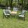 "The water-repellent, lacquered surface of the table top makes the Bista particularly easy to clean and resistant to the elements. This means it remains a reliable companion even in changeable weather. The rounded corners not only ensure a modern design, but also safety and comfort during use. An integrated mesh storage compartment under the tabletop offers additional storage space for cutlery, gloves or other small items that need to be within easy reach."