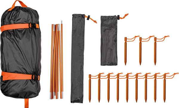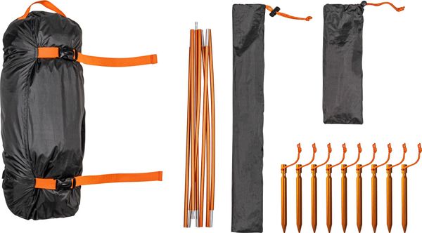 - Inner tent: "100 % polyester (rPET), breathable, PFC-free outer tent": "100 % polyester (rPET) 75D, PU-coated, black coating, approx. 3000 mm water column, PFC-free floor": "100 % polyester (rPET) 75D, PU-coated, approx. 5000 mm water column, PFC-free fabric": Aluminium