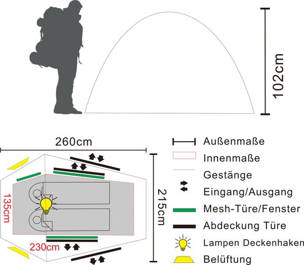 - Dimensions of the outer tent: