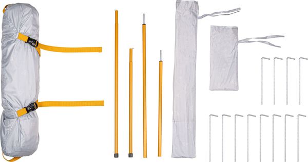 - Inner tent: "100 % polyester (rPET), breathable, PFC-free outer tent": "100 % polyester (rPET), PU-coated, 2000 mm water column, WR, PFC-free floor": "100 % polyester (rPET), PU-coated, 2000 mm water column, WR, PFC-free fabric": Steel