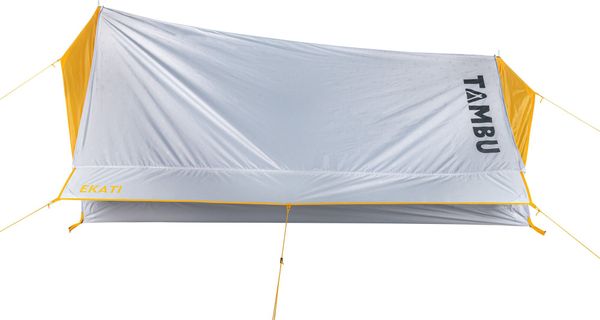 "The ultralight Ekati bivouactrekking tent from Tambu is the perfect choice for outdoorenthusiasts who value minimalism and flexibility. With a weight of only around 1.8 kg and a compact pack size of 57 u00d7 11 u00d7 11 cm, this tent is ideal for long trekking tours, camping trips and cycling trips. The tent impresses with its minimalist ridge tent design, which is not only stable and streamlined, but also offers a protected sleeping area for two people. Thanks to the clever construction with two poles, the tent can be pitched quickly and easily."