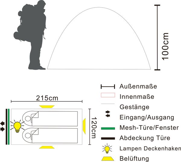 "With its outer dimensions of 215 u00d7 120 u00d7 100/70 cm, the tent offers a comfortable seating height in the entrance area, while the flatter footprint saves weight and improves wind stabilityu00e4t. This makes the Ekati perfect not only for trekking and bikepacking, but also for canoe tours and microadventures. Experience nature up close and enjoy the freedom that the Ekati from Tambu offersu2013 a tent that does not compromise on functionalityu00e4t and sustainability."