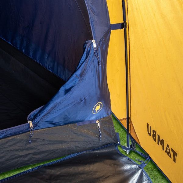 "The HENA 4 from Tambu is the perfect dome tent for anyone who doesn't want to compromise on comfort and spaciousness when camping. With its generous dimensions of approx. 320 u00d7 250 u00d7 190 cm, it offers enough space for up to four people and impresses with its well thought-out room concept. The separate living area directly behind the large front entrance with a height of approx. 160 cm is ideal for changing, for luggage or as a sheltered lounge area. A separate floor tarpaulin ensures that the vestibule can be used flexibly, whether open or fully protected from dirt and moisture."
