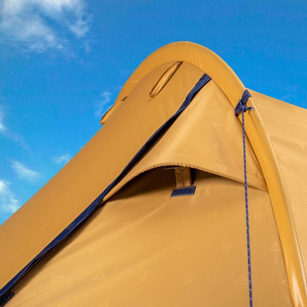 "With a weight of only approx. 5 kg and a compact pack size, the Kalo 3 is easy to transport without compromising on comfort and functionality. The integrated meshelements in the inner tent ensure good air circulation and also protect against insects. The ventilation openings in the outer tent also support air exchange and reduce condensation. A lamp holder in the inner tent makes it easy to use lighting."