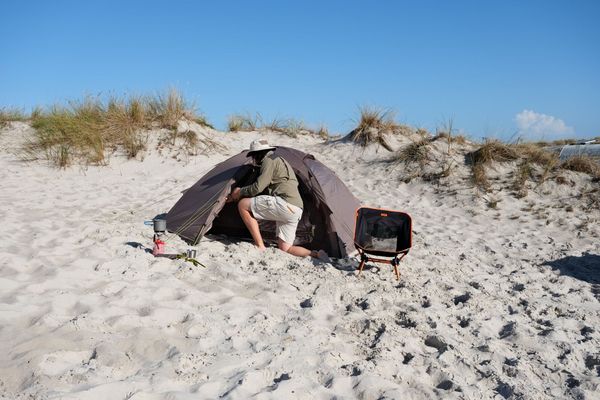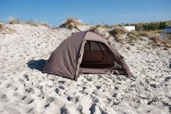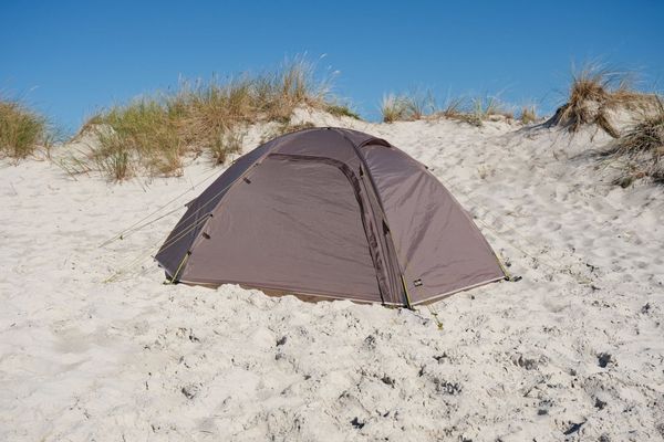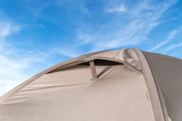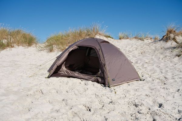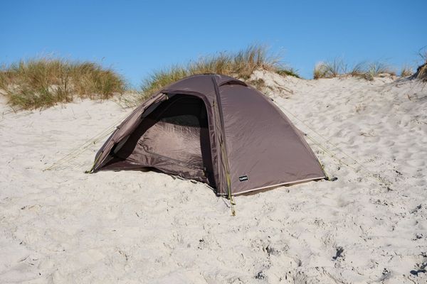 "The outdoor tent is PU-coated and siliconized and offers reliable protection against rain with a water column of 3000 mm. The tent floor, with a wateru00e4ule of 5000 mm, also protects against moisture from belowu00e4. Made from recycled polyester from PETbottles, the tent u2013 like all Tambu models u2013 is PFC-free and therefore environmentally friendly. The Kamalo 2 is the perfect companion for outdooradventures that combine sustainability and functionality."