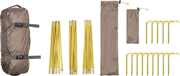 - Inner tent: "100 % polyester (rPET), breathable, PFC-free outer tent": "100 % polyester (rPET) ripstop 68D, PU-coated, siliconized, approx. 3000 mm water column, WR, UV-resistant, PFC-free groundsheet": "100 % polyester (rPET) 68D, PU-coated, approx. 5000 mm water column, WR, PFC-free fabric": "Aluminum 8.5 mm ) pegs": Lime
