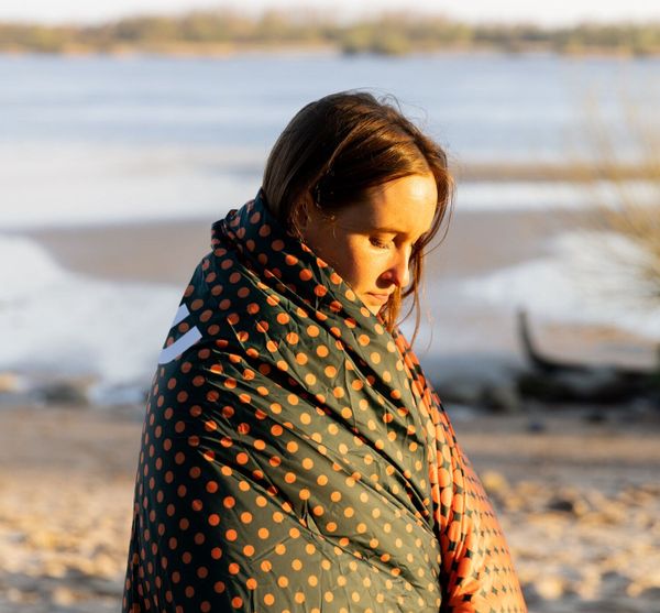 "Made from recycled nylon material obtained from PET bottles, the KAMBALA blanket sets an example for sustainability. The synthetic filling ensures cozy warmth and excellent breathability, while the Bionic Finish Eco finish makes the surface water-repellent and PFC-free. This keeps the blanket dry and comfortable even on damp ground or on the beach. The permanently integrated pack sack serves as a practical pillow case and makes it easier to stow and carry"