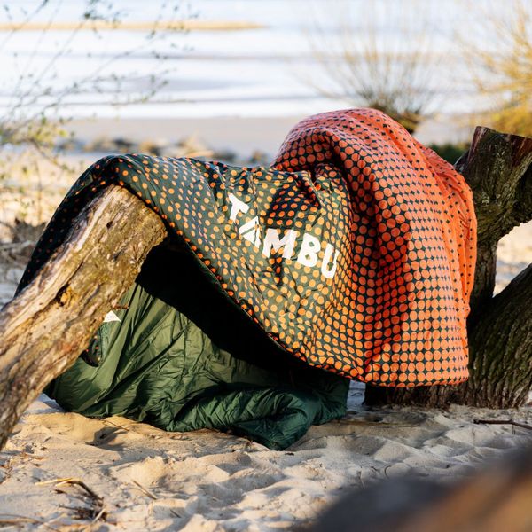 "Visually, the KAMBALA scores with a modern, two-tone design in green and orange that blends harmoniously into any outdoorenvironment. This blanket is not only a practical accessory, but also a statement for environmentally conscious travel. Experience comfort, functionality and sustainability in one with the KAMBALA camping blanket from TAMBU and enjoy your adventures in nature."