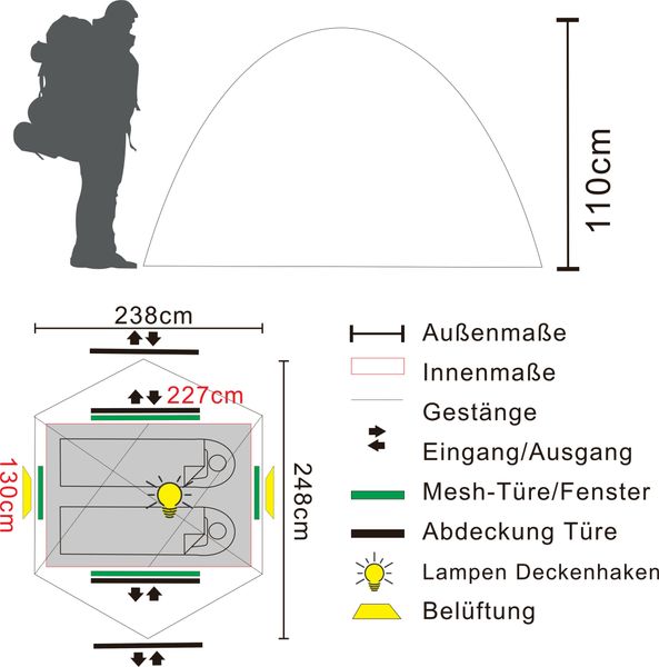 - "Lightweight 2-person dome tent for trekking, Trekking, bikepacking and weekend adventures Classic dome construction ensures high stability and versatile use Freestanding design allows flexible setup on a wide variety of surfaces Two opposing entrances for convenient access and maximum flexibility Two protected entrance areas provide space for shoes or gear Inner tent can be pitched separately in warm weather Mosquito net made from recycled polyester ensures optimum ventilation and insect protection Pleasant indoor climate thanks to sophisticated ventilation and airy construction Reliable weather protection thanks to 3000 mm water column in the outer tent and 5000 mm floor Made from recycled polyester from PET bottlesBottles PFC-free like all TAMBU products"