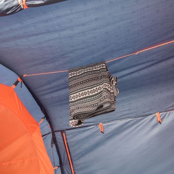 - "Double-roof Vis-u00e0-Vis tent with standing height 2 separate sleeping cabins for more privacy Central living area with 2 entrances Separate groundsheet for the living area Additional zipper for passing through a power cable Wu00e4 rope in the roof lining Inner pockets 3 lamp holders"