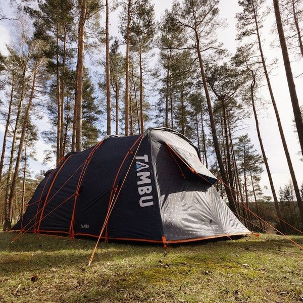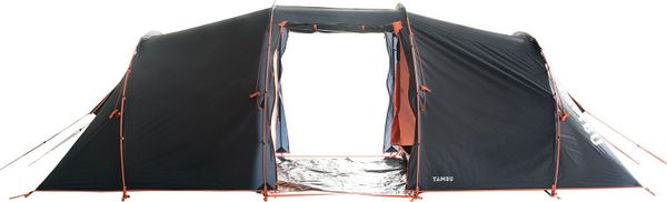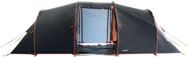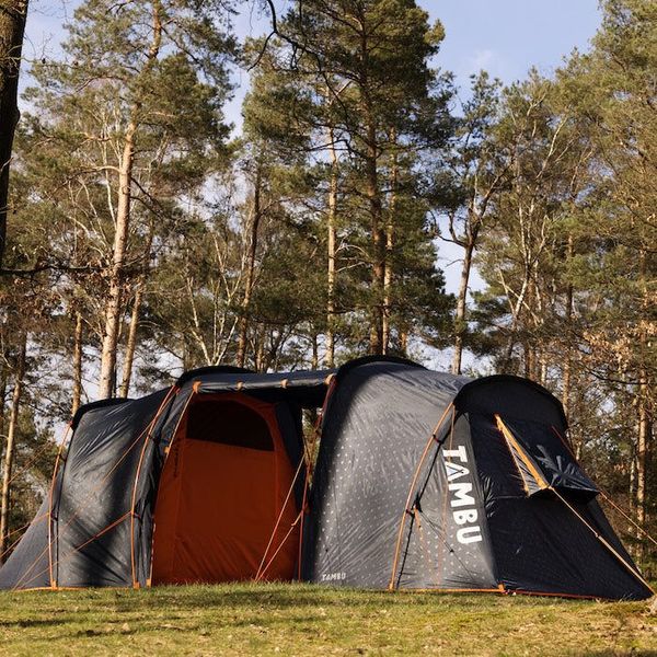 "The MANDAPA 6 from TAMBU is the ideal Vis-u00e0-Vis family tent for anyone who wants to enjoy camping with comfort and structure. Whether for longer vacations, trips with friends or relaxed weekends, this tent offers ample space and well thought-out details for up to six people. The two opposing sleeping cabins ensure privacy and a good night's sleep. With a standing height of 200 cm in the central living area, which connects the two sleeping cabins, the tent offers enough space for sitting, changing or as a weather-protected lounge area"