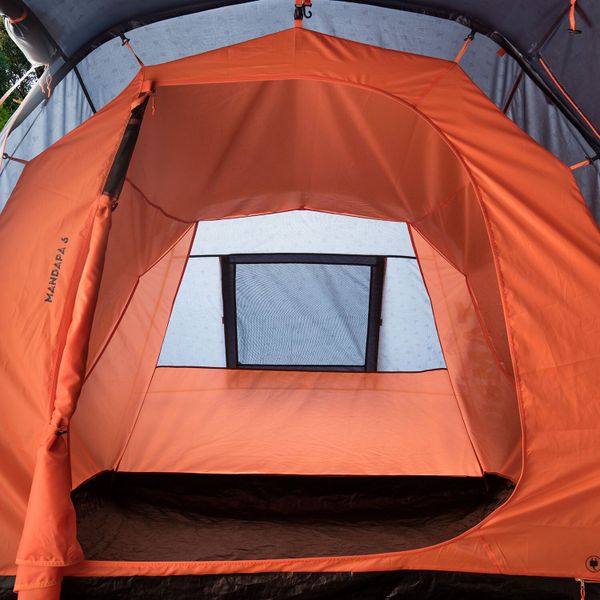 "The central living area of the MANDAPA 6 can be used flexibly thanks to the separate groundsheet, which protects against moisture and dirt if required. Large mosquito windows, mesh-Tu00fcrenes and ventilation openings guarantee a pleasant sleeping climate, while large windows in the living area provide plenty of daylight and a friendly atmosphereu00e4re. Practical details such as lamp holders, cable ducts and several entrances and exits increase comfort in everyday camping life."