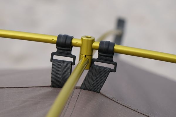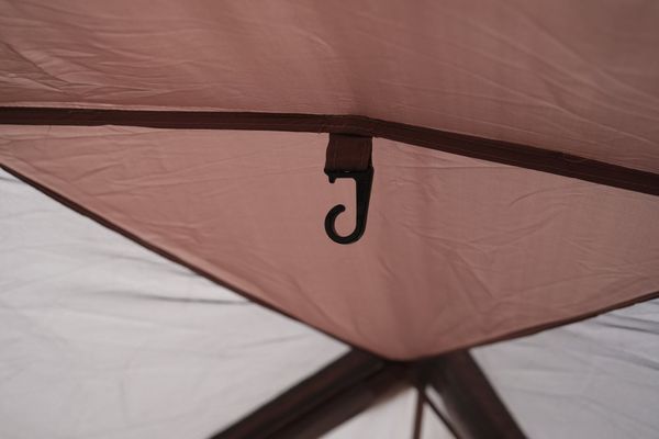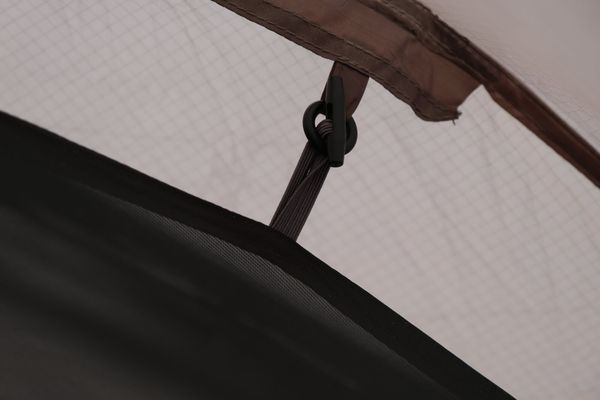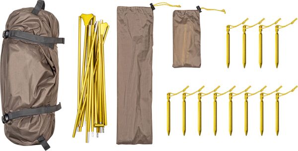 - Inner tent: "100 % polyester (rPET), breathable, with mosquito net inserts, PFC-free outer tent": "100 % polyester (rPET) ripstop 68D, PU-coated, siliconized, UV-resistant, PFC-free floor": "100 % polyester (rPET) 68D, PU-coated, water-repellent, PFC-free design": "Aluminum frame u00d8 8.5 mm ) pegs": Aluminium