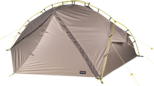 "An integrated No-See-Um mosquito net in the breathable inner tent ensures good ventilation and keeps annoying insects at bay. With a total weight of only approx. 2.9 kg and a compact pack size of approx. 46 u00d7 17 u00d7 17 cm, the PUSPA 2 is easy to transport and ideal for minimalist adventures, whether trekking, bikepacking or camping. The sturdy aluminum frame (8.5 mm) contributes to a robust construction without unnecessarily increasing the weight, and the PFC-free production underlines TAMBU's environmentally friendly approach."