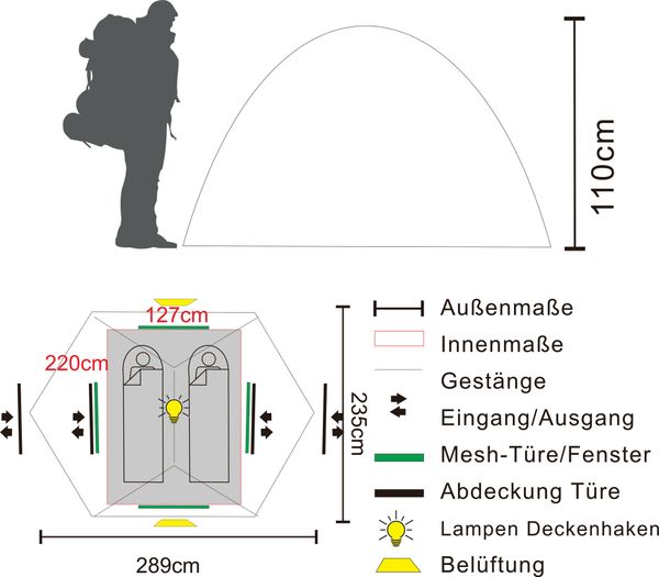 "The PUSPA 2 by TAMBU is the ideal tent for trekking lovers and outdoor enthusiasts who value lightness and stability. This 2-persondome tent not only offers you reliable weather protection, but also a well thought-out construction that combines flexibilityu00e4t and comfort. With an inner tent size of approx. 220 u00d7 125 u00d7 100 cm, it offers enough space for two people or additional storage space for equipment. The free-standing dome construction enables quick and easy assembly on a wide variety of surfaces and ensures high stability, even in windy conditions"
