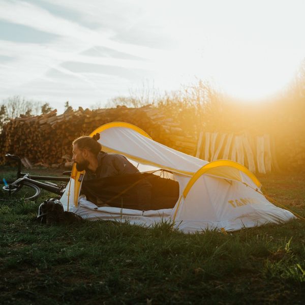 "The ROBI from TAMBU is the ideal tent for outdoorenthusiasts who value lightness and functionality. Weighing just 1.3 kg when packed, it is perfect for trekking, cycling, camping and motorsports. The single-wall construction allows for quick set-up, while the large side entrance with mosquito net ensures easy access and insect protection. Thanks to the use of 100% recycled polyester, the ROBI is not only environmentally friendly, but also offers reliable protection against rain with a water column of 2000 mm."