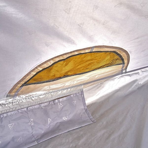 "The tent is specially designed for mobile tours where a small pack size and low weight are crucial. The aerodynamic shape with a height of 80 cm at the front and 50 cm at the back minimizes the area exposed to wind and maximizes stability. Two permanent vents ensure pleasant air circulation, keeping the climate inside the tent comfortable even on hot days"