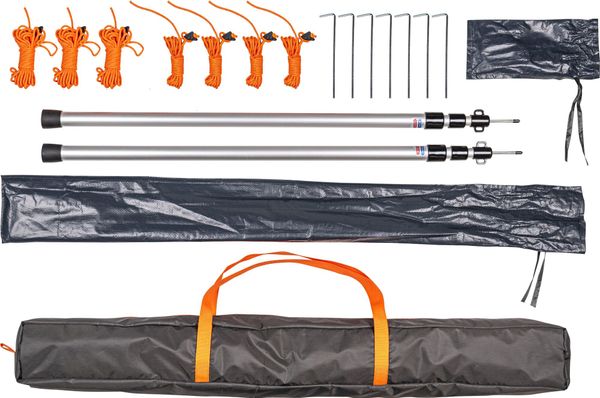 "With a weight of around 2.9 kg and a compact pack size of approx. 99 u00d7 10 u00d7 10 cm, the SAURASKA is easy to transport and can be stowed away quickly. Bracing material and pegs are included, so you are ready to go straight away. Whether at the campsite or on spontaneous trips, this awning expands your living space and offers you comfort and protection in the great outdoors."