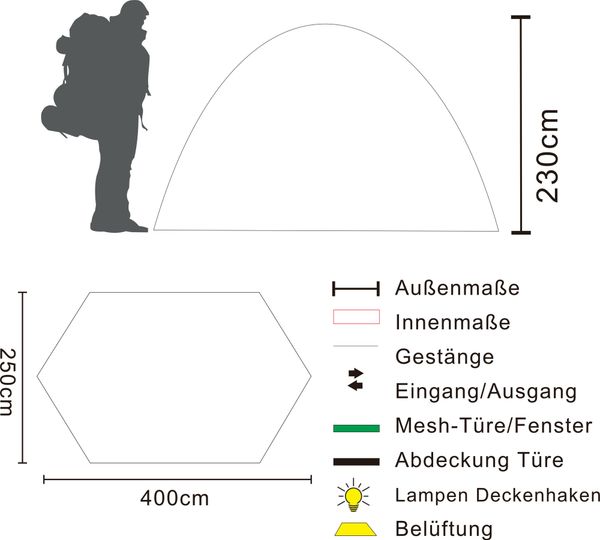 - Dimensions of the outer tent: