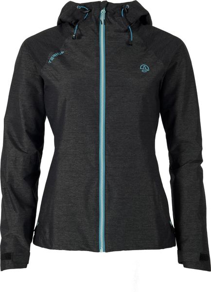 Damen-Funktionsjacke. 2 Lagen in melierter Optik. Hergestellt aus winddichtem und wasserdichtem Gewebe. Die Kapuze und Säume sind mit Tanka regulierbar. Seitentaschen mit Reißverschluss