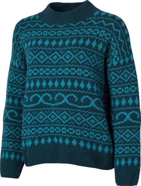 - Ein sehr tragefreundliches Kleidungsstück zum Einsatz im Alltag mit geometrischen Motiven, die es wie die Neuauflage eines Norwegerpullovers wirken lassen