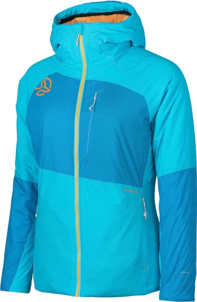 Lightweight, water-repellent women's jacket with recycled materials and high warmth capacity for outdoor adventures.