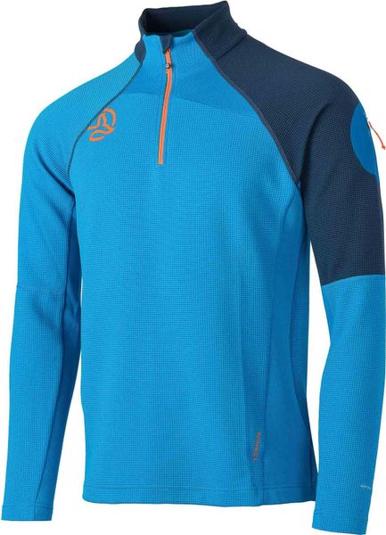 "The shirt's elasticity and athletic fit guarantee excellent freedom of movement, while the half-length front zip makes it easy to put on and provides additional ventilation if required. Flatlock-Nu00e4wires and a chin guard prevent unpleasant chafing and the bonded zipperu00dfverschluss-u00c4rmelt pocket offers practical storage space. The innovative 3D-wingu003e ensures optimum drying and insulation, while the PFC-free, water-repellent treatment offers additional protection from the elements"