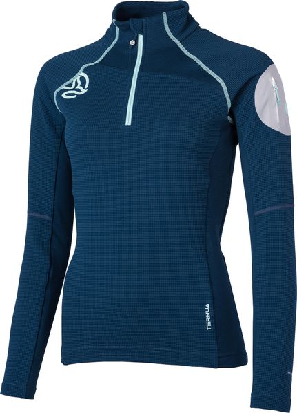 "The Lemika 1/2 Zip W by Ternua is the ideal second layer for active women who want to rely on the highest level of functionality and comfort when ski touring, climbing, ice climbing or long trekking tours. This innovative ladiesshirt is made from the environmentally friendly WARMSHELL fabric, which is made from recycled postconsumer plastic bottles. It offers excellent breathability and helps regulate body temperature by efficiently transporting sweat to the outside."
