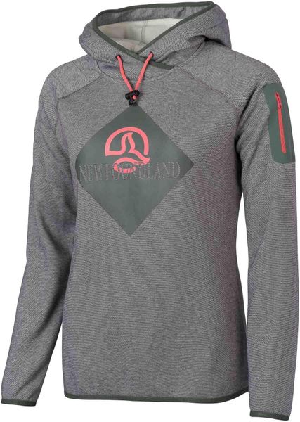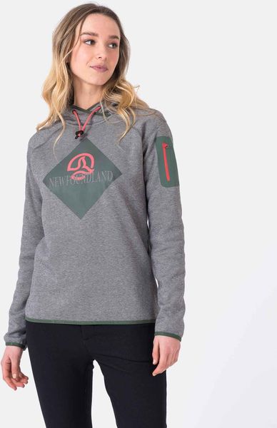 Recycled sports style women's sweatshirt made of Warmshell. Its fabric is recycled and has been made using plastic bottles. And its interior is brushed, breathable and quick-drying. A sweatshirt with a sleeve pocket and an adjustable hood, perfect for any occasion.