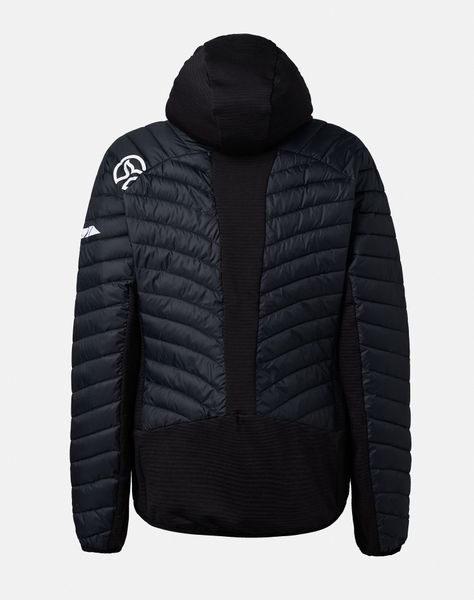 "The jacket features a recycled ripstop 15D fabric with 100g PrimaLoftu00e Gold Insulation Luxe in strategic areas to retain heat, while areas such as the hood, sides, back, armpits and waistband are equipped with recycled warmshell for optimal breathability. The wind-protected neck area and slim fit cut with a tight hood, which is also suitable for use with a helmet, offer additional comfort and protection during outdooractivitiesu00e4ten."