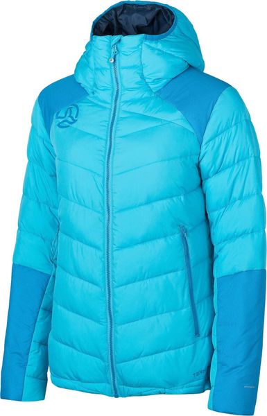 Sustainable women's jacket with PRIMALOFT THERMOPLUME filling, ideal for cold days, water-repellent and compactly stowable.