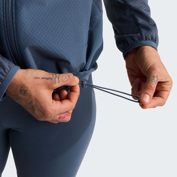 "The elasticated edging on the hood and cuffs as well as the internal hem adjustment guarantee an individual fit and additional protection from the elements. With its lightweight yet robust material mix of recycled polyester and elastane, this jacket is not only sustainable, but also extremely hard-wearing and flexible, making it perfect for all your outdoor adventures."