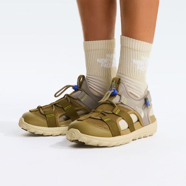 "The North Face's Y Explore Camp Shandal combines the best features of shoes and sandals and has been specially developed for young adventurers. These versatile sandals are not only perfect for everyday wear, but also offer excellent support and comfort during outdoor activities. The innovative SURFACE CTRLu2122 rubber sole provides excellent grip, traction and durability, even on slippery surfaces."