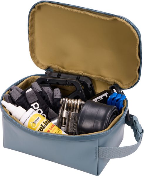 "The Chasm Small Gear Cube in the color Pond Gray from Thule is the ideal companion for anyone who values order and protection of their equipment. This compact equipment cube is made from a durable, weatherproof tarpaulin fabric and reliably protects your contents from the elements. The polyurethane-coated zippers provide additional protection against moisture and dirt."
