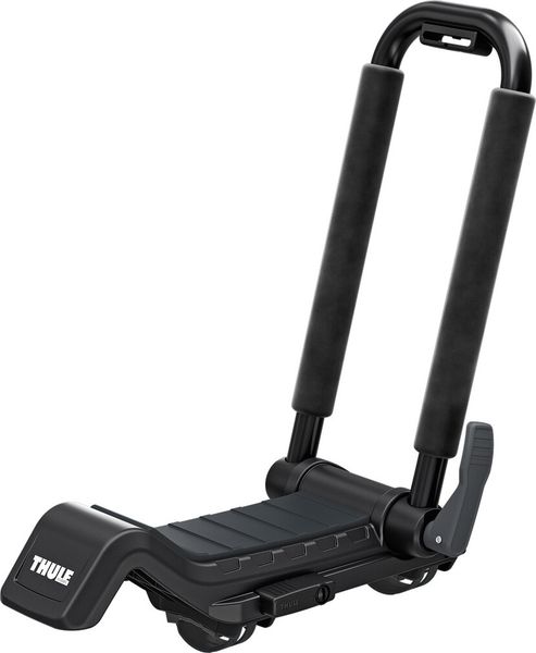 "The Thule Hull-a-port XTR is the ideal companion for kayak adventures, whether for one or two boats. Thanks to its clever design, it offers the flexibility to transport either a single kayak in an angled holder or two kayaks side by side in a loading position. The universal fastening device enables quick and easy mounting on almost all types of crossbars up to a width of 80.5 mm."
