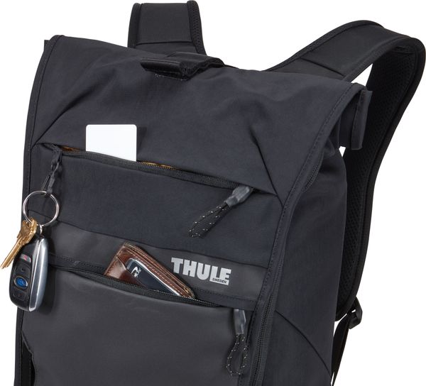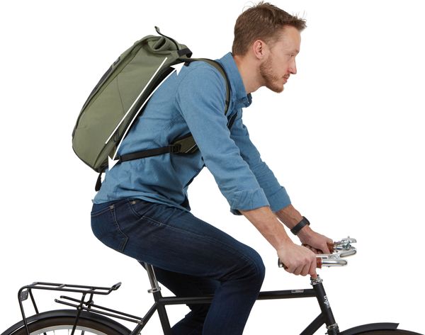 "The Thule Paramount Commuter Backpack 20L is the ideal companion for anyone who commutes by bike every day. This sophisticated backpack combines modern design with high functionalityu00e4t and comfort to make your commute as pleasant as possibleu00f6. Thanks to its robust 420Dnylon fabric and water-repellent coating without PFCs, it is optimally protected against the elements. The roll closure not only offers security, but also flexibility thanks to additional storage space when needed."