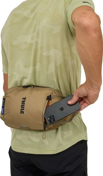 "The Thule Rail Hip Pack 2L is the ideal companion for active adventure lovers who value comfort and functionality. This hip bag offers a well thought-out layout that allows easy access to your cell phone thanks to the soft, quilted pocket on the back. On long tours, the side pockets provide enough space for two water bottles, while they can be easily folded for a slimmer shape on shorter trips."