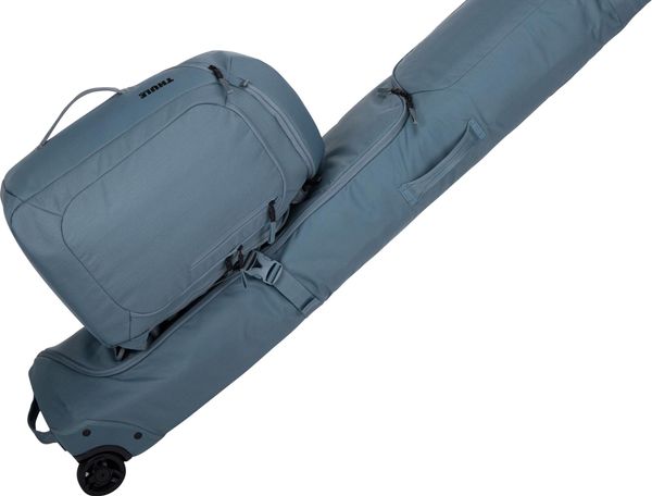 - "Luggage loop for attaching the duffel to the Thule ski bag with wheels for easy transportation at the airport"