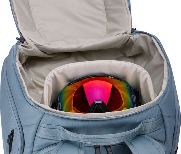 "A particular highlight is the protective top compartment, which allows quick access to helmet and goggles u2013 perfect for a smooth start to the day on the slopes and an equally quick finishu2013. The practical side pockets offer additional storage space for gloves, base layers and various accessories, while the padded goggle compartment keeps your glasses protected and dry."