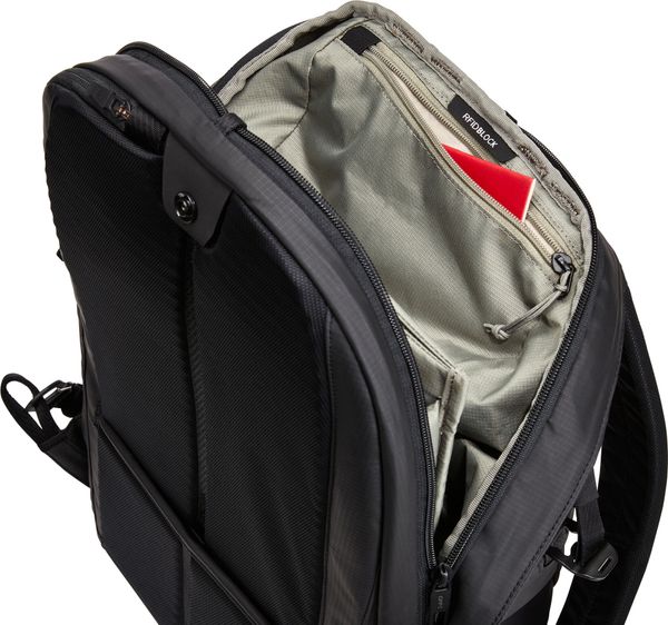 "The Tact Backpack 21L from Thule is the ideal companion for everyday life and leisure activities. This well-designed backpack not only offers you enough space for your most important everyday items, but also protects your electronic devices with a padded compartment for laptops up to 15.6 inches. A separate slip pocket offers additional storage space for tablets or documents, while the main compartment with hidden zippers and a rear opening keeps your belongings safe."