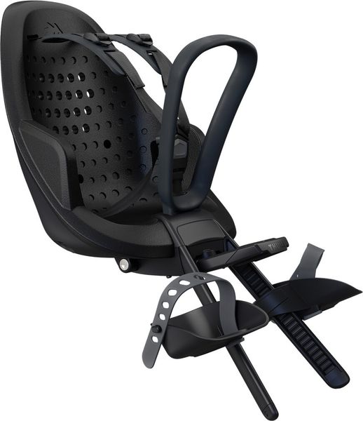 "The Thule Yepp 2 Mini is a smart and functional child bike seat specially designed for everyday rides with your child. The seat is made of soft, shock-absorbing molded foam that allows your child to travel in comfort. Adjustable footrests and foot straps ensure that the seat grows with your child and always offers a perfect fit. The child-friendly safety harness buckle allows quick and effortless buckling, while the adjustable padded 5point safety harness ensures a secure and comfortable fit."
