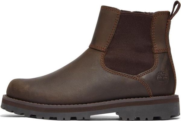"The Kids Mid Chelsea Boot from Timberland is the perfect companion for your children's everyday life and leisure time. With an upper made from high-quality Timberland leather, this shoe not only impresses with its robustness and durability, but also with a sustainable manufacturing process that is supported by the Leather Working Group."