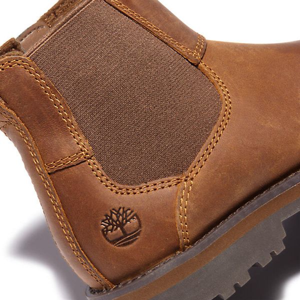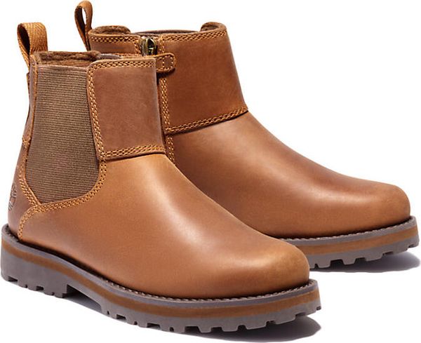 "The Kids Mid Chelsea Boot from Timberland is the perfect choice for every day and leisure time. This robust and hard-wearing boot is specially designed for children and offers not only durability but also style thanks to the high-quality workmanship of premium Timberland leather. A practical side zip and pull tab make it easy to put on and take off, which makes everyday use particularly comfortable."