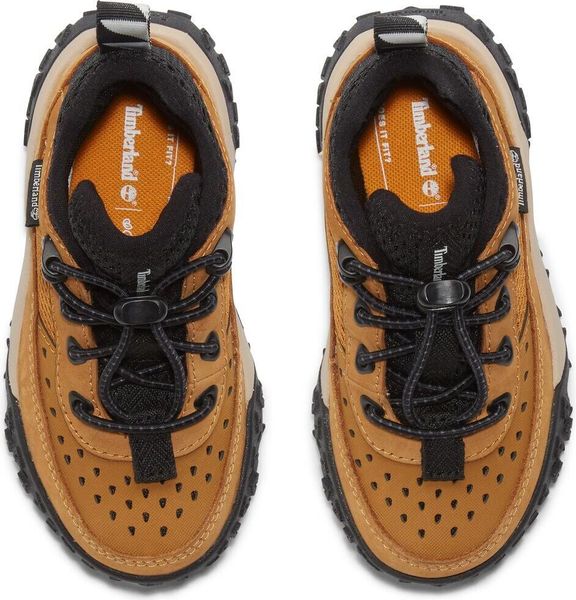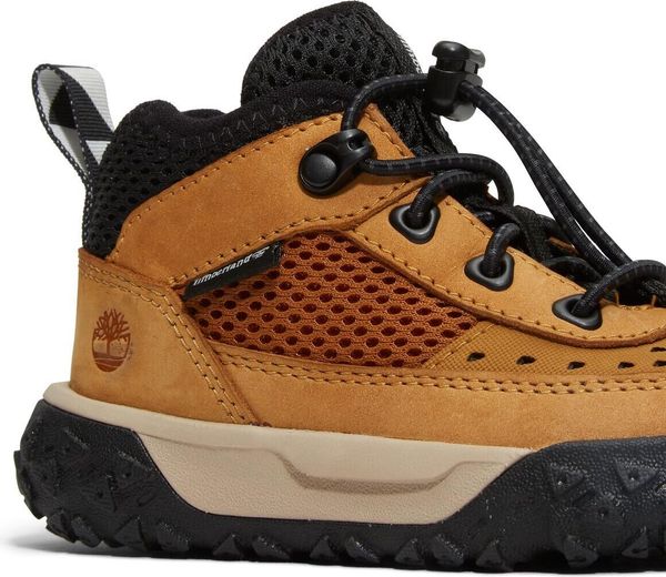 The Toddler Low Bungee Hiking Boot from Timberland is the perfect companion for little explorers on their adventures in nature. Specially designed for children, this hiking boot not only offers optimum comfort, but also excellent protection and functionality. Made from high-quality premium Timberland® leather and ReBOTL™ fabric, the shoe contains at least 50% recycled PETplastic, making it an eco-friendly choice for environmentally conscious parents. Timberland is committed to responsible leather production and supports the Leather Working Group.