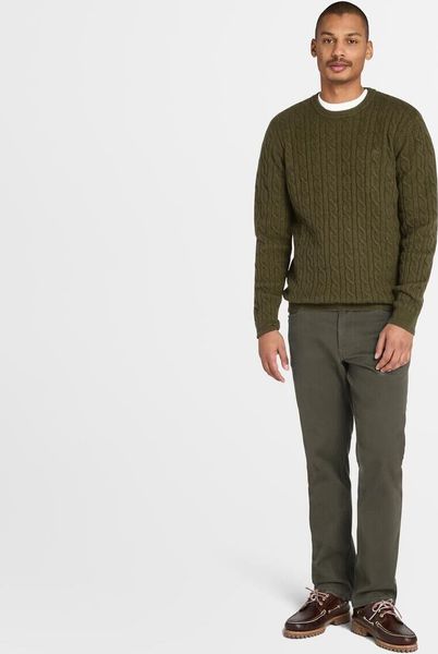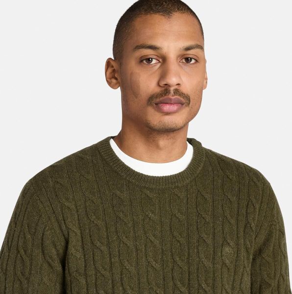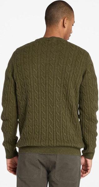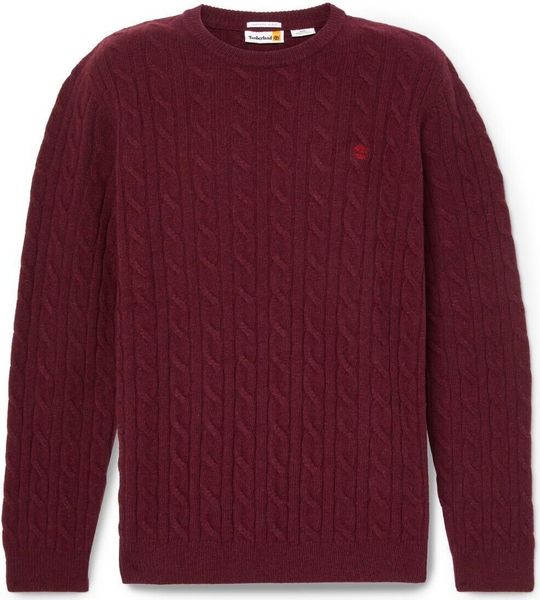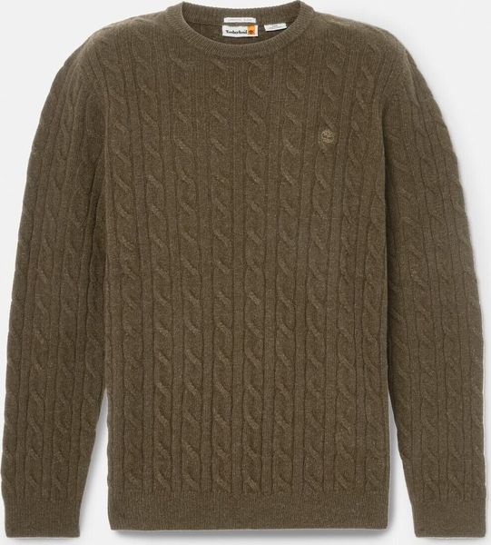 Classic men's sweater with cable-knit pattern made of warming wool blend fabric and embroidered Timberland® logo.