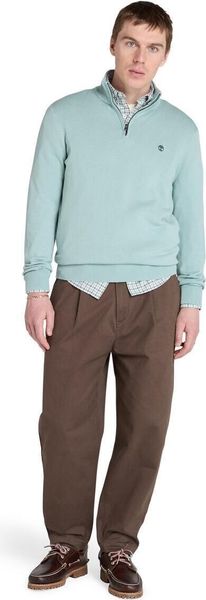 "The Timberland men's pullover with 1/4 zipper made from 100% organic cotton is the perfect addition to any wardrobe. Made from sustainable cotton that comes from farms without genetically modified seeds or synthetic pesticides, this sweater not only offers comfort but also a clear conscience. Its classic design with a regular fit creates a casual yet elegant look that is perfect for everyday wear and leisure."